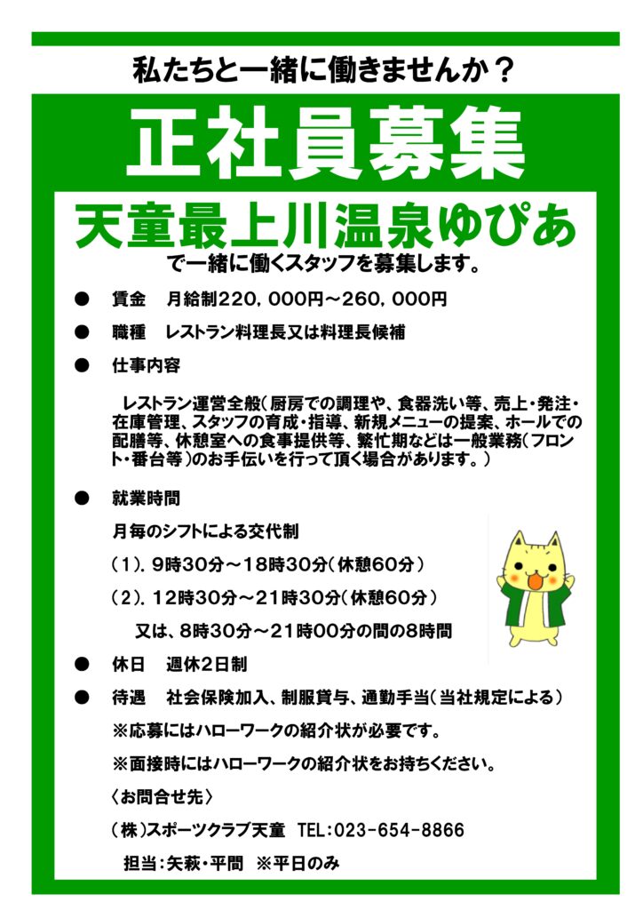 一般業務及びレストランで働くスタッフを募集しています。